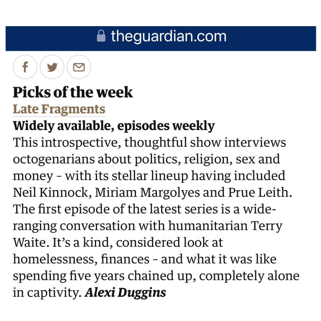 A series of interviews with extraordinary octogenarians, conducted by Chloe Fox. In each episode, the main topics covered will be those apparently best avoided in polite company – Religion. Sex. Politics. And Money. Opinion and insight guaranteed.